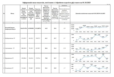 З обласного бюджету на вказані потреби скерували 18,7% – це понад 780 млн грн. Водночас у низці громад частка оборонних видатків залишається низькою: Добросинсько-Мегерівська – 1,8%, Самбірська – 1,6%, Підкамінська – 1,4%, Турківська – 2,0%, Новояричівська – 3,7%, Рудківська – 2,2%, Бісковицька – 1,8%.
