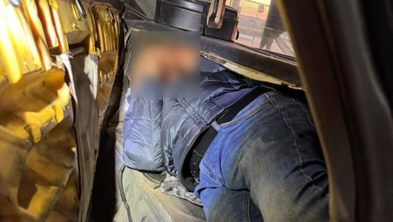 Правоохоронці виявили 39-річного жителя Львівщини, який переховувався у непризначеному для перевезення місці — між задніми пасажирськими сидіннями та багажним відділенням авто.