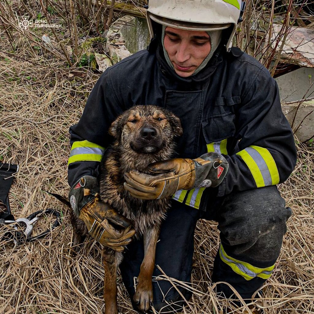 На місце події прибули рятувальники зі Стрия. Один із них спустився в колодязь по штурмовій драбині та обережно дістав тварину. Попри пережитий стрес, пес поводився спокійно та не проявляв агресії.