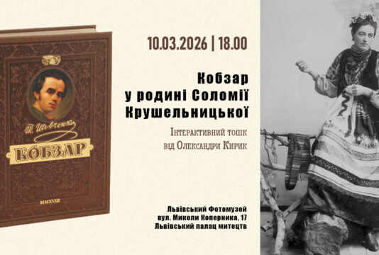 У вівторок, 10 березня 2026 року о 18.00, у Львівському Фотомузеї (Львівський палац мистецтв, вул. Коперника, 17) відбудеться інтерактивний топік «Кобзар у родині Соломії Крушельницької» від Олександри Кирик, наукової співробітниці Музично-меморіального музею Соломії Крушельницької у Львові.