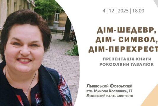 У четвер, 4 грудня 2025 року о 18.00, у Львівському Фотомузеї (Львівський палац мистецтв, вул. Коперника, 17) відбудеться презентація книги Роксоляни Гавалюк “Дім-шедевр, дім-символ, дім-перехрестя”. (Львів, Видавництво Апріорі. 530 с.)